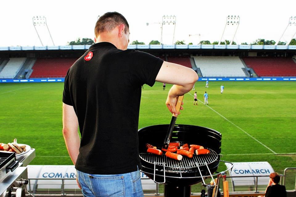 Grille węglowe Barbecook w czasie letniego grillowania krakowskim stadionie.