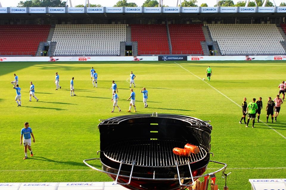Grillowanie na trybunach? Dlaczego nie ?:) Nasza reprezentacja grilli węglowych Barbecook w postaci czerwonego grilla Edson i grilla Major w czerni zawitała na murawie i trybunach. Grille Barbecook gościły na trybunach stadionu Cracovia w czasie odbywającego się meczu towarzyskiego.