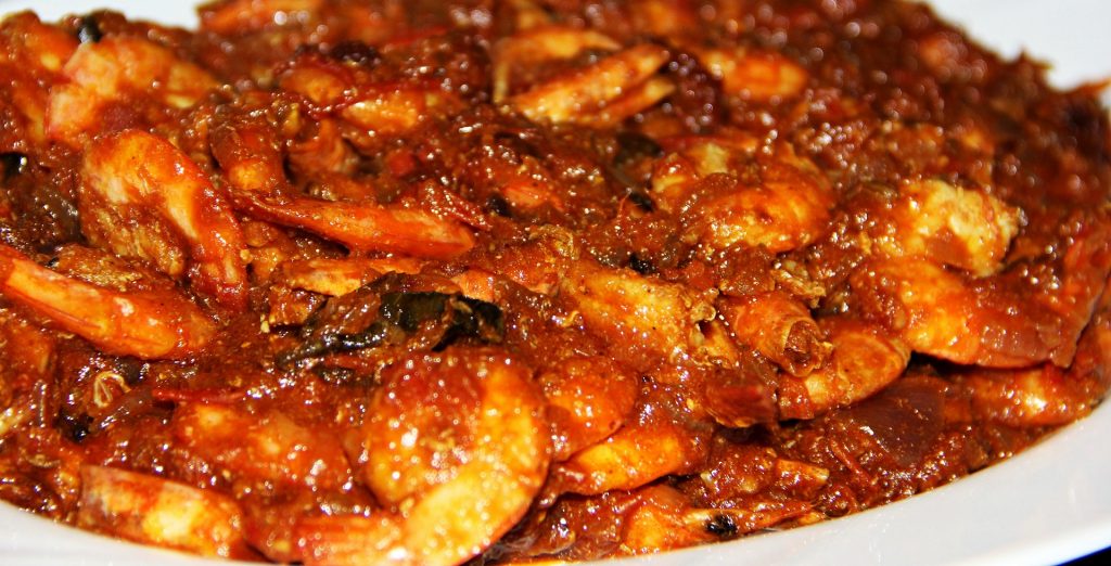W żeliwnym woku podgrzewamy olej kokosowy i podsmażamy na nim pokrojoną w wiórka cebulę oraz starty imbir. Gdy cebula się przyrumieni, wkładamy krewetki i czerwoną paprykę – smażymy kilka minut nieustannie mieszając. Solimy. Następnie dodajemy pastę pomidorową oraz przyprawy i dusimy przez kilka minut, a następnie dodajemy mleczko kokosowe. Nie zapominając o mieszaniu smażymy jeszcze przez kilka minut. Carry podajemy z ryżem lub grzankami.