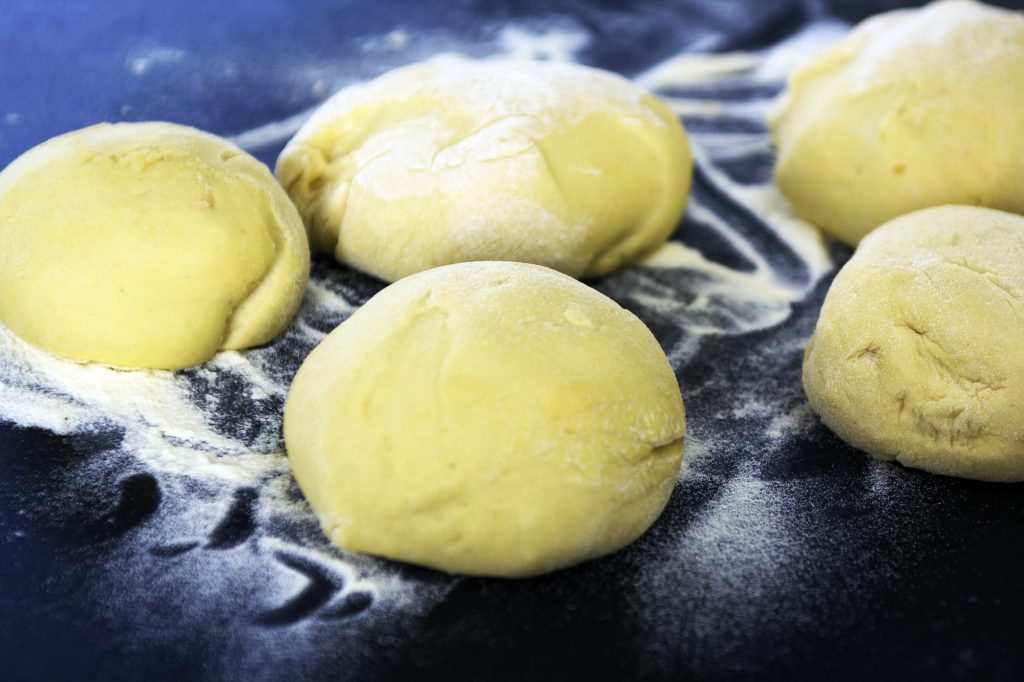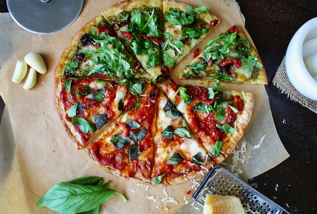 Po wyrośnięciu ciasto kształtujemy na kształt okręgu. Sos pomidorowy rozrabiamy z rozgniecionym czosnkiem i łączymy z łyżką oliwy, następnie rozprowadzając po cieście. Na cieście układamy suszone pomidory, posypujemy wedle uznania przyprawami i startym parmezanem.